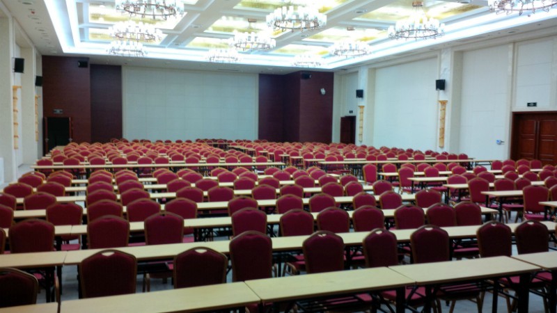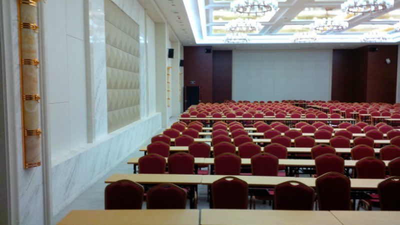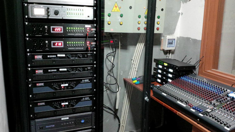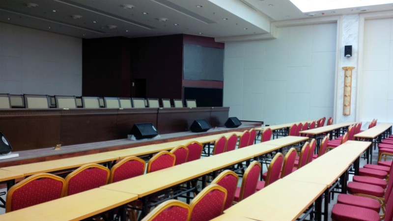 某行政中心會議報告廳,800個平米,政府會議/報告廳。安裝12對15寸音響。語音清晰度優秀!