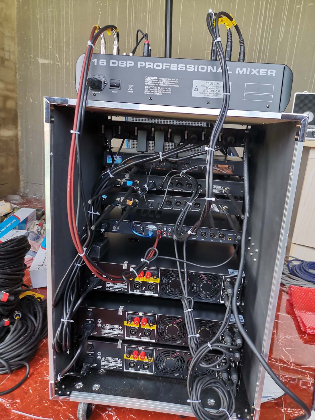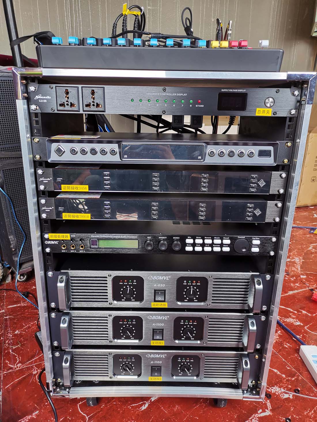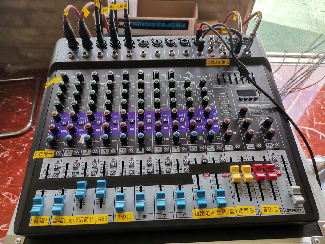 貴陽師範操場演出音響,采用4隻雙15黄色视频软件下载,兩隻12寸返聽黄色视频软件下载,頭戴話筒4隻,手持話筒6隻,合唱話筒2隻,各種專業設備齊全,此配置類型性價比較高,滿足1000人匯演需求。
